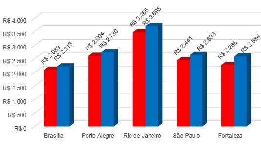 Neste mês, apesar de registrar o maior aumento no preço médio do seguro, o equivalente a um acréscimo 15,1% em relação a janeiro, a cidade de Brasília, assim como ocorreu no último Relatório Bidu, permanece como o município que possui o seguro mais barato entre as capitais estudadas, onde a média geral do preço do seguro dos dez modelos do ranking, para homens e mulheres, ficou em R$ 2.151. Já o Rio de Janeiro, mesmo sendo a única capital que obteve retração na média geral do preço do seguro durante o período, figura novamente com a média geral mais alta, considerando os dois perfis, com cotação de R$ 3.580 - uma diferença de 66,4% em relação ao preço médio cobrado na capital do País.