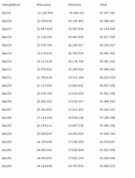 Confira, ao final do texto, tabela com o histórico do número de beneficiários em planos de assistência médica, separados por sexo.