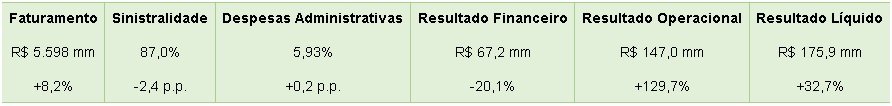 Registrou números relevantes frente ao mercado de saúde suplementar brasileiro. O faturamento alcançou R$ 5,6 bilhões, a sinistralidade recuou 2,4 pontos percentuais em relação a 2, os resultados operacional e líquido, R$ 147 milhões e R$ 175,9 milhões, respectivamente.