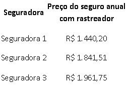 Você perceberá que uma cobertura completa com rastreador é a mais vantajosa, já que a diferença de valor mensal é muito pequena, se comparada às demais. A diferença maior ocorre na contratação do seguro para roubo e furto, mas essa não inclui cobertura contra colisão.