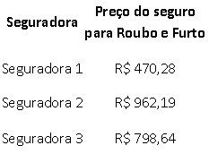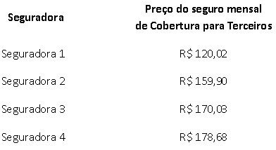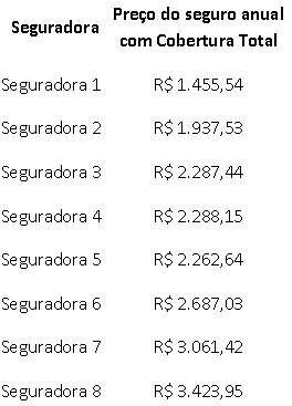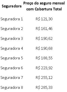 Para o seguro de cobertura total, além das cotações realizadas com a TEx, a Smartia fez cotações em uma corretora de seguros parceira para verificar a diferença de valores para o mesmo perfil. Veja abaixo os valores pesquisados.