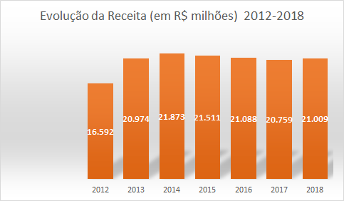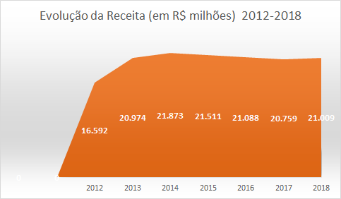 O último ano de crescimento real e efetivo ocorreu em 2013, há seis anos, quando atingiu R$ 20,9 bilhões em receitas anuais. Em 2018 fechou R$ 21 bilhões. Quando aplicamos a inflação do período na arrecadação, temos uma queda expressiva.