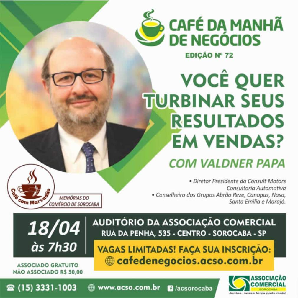 Pensando nisso, a Associação Comercial de Sorocaba recebe nesta quinta-feira (18) às 7h30, no 72º Café da Manhã de Negócios, o especialista em neuromarketing, Valdner Papa, com o tema “Você quer turbinar seus resultados em vendas?”.