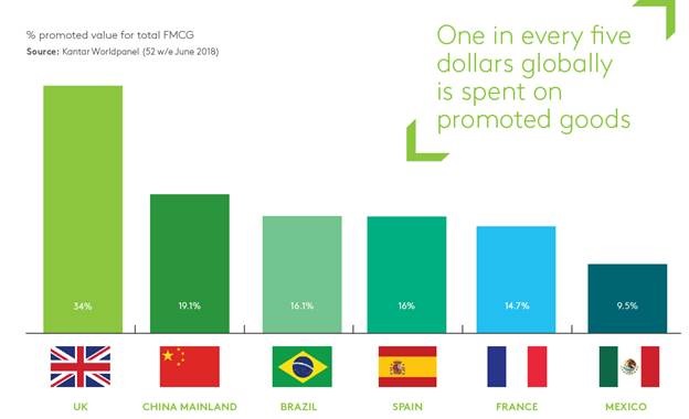 As promoções têm grande importância no crescimento global das empresas e marcas de bens de consumo. Um estudo da multinacional de painéis de consumo Kantar em seis mercados – Brasil, México, China Continental, França, Espanha e Reino Unido - aponta que um em cada cinco dólares gastos foram em produtos promocionados.