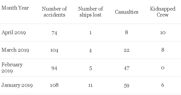 A partir de agora, publicarei mensalmente os número sobre os acidentes envolvendo navios da marinha mercante mundial.
