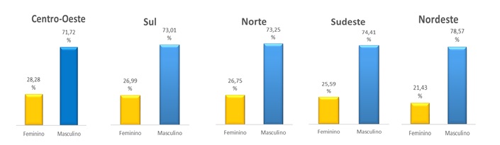 Quanto às regiões brasileiras, o Centro-Oeste tem o maior número de indenizações pagas por acidentes envolvendo mulheres, com 27% do total de pagamentos por ocorrências com o sexo feminino. Na sequência, estão Sul e Sudeste com 26%, Norte (27%) e Nordeste (21%).