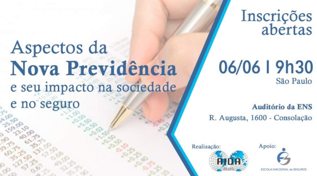 No dia 06 de junho, no auditório da Escola Nacional de Seguros em São Paulo, a Associação Internacional de Direito de Seguros (AIDA) reunirá especialistas do setor para discutir os aspectos da Nova Previdência e seu impacto na sociedade e no seguro.