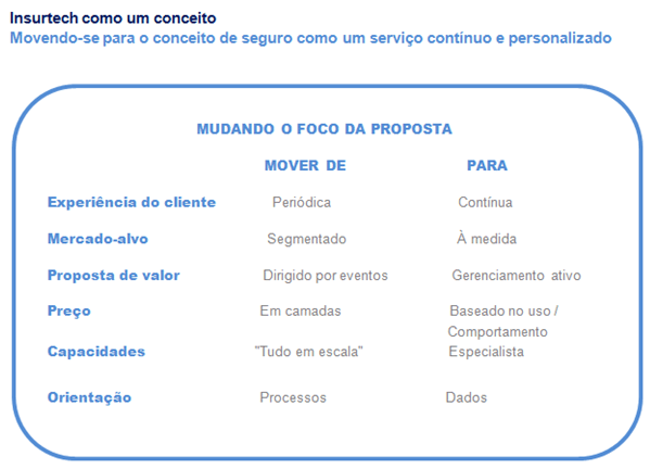 Insurtech como conceito significa usar tecnologia no seguro para levá-lo a um serviço contínuo e personalizado; mudando o foco da proposta de valor.