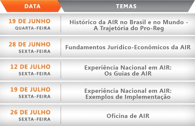 A Análise de Impacto Regulatório (AIR) visa o aprimoramento da qualidade regulatória, avaliando, a partir da definição de um problema regulatório e baseada nas melhores evidências disponíveis, os possíveis impactos das opções regulatórias no ambiente de negócios e sua eficácia para o alcance dos objetivos pretendidos. Atualmente, a AIR é considerada um dos pilares da boa governança pública, tendo ganhado ainda mais relevância após e edição das Diretrizes Gerais de AIR, em junho de 2018, pelo Governo Federal.