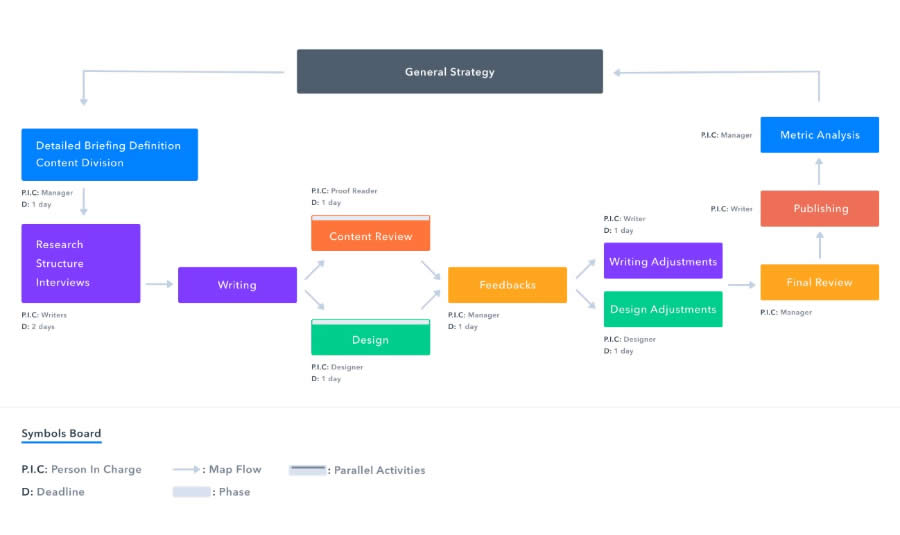 Um mapa de fluxo de valor (VSM) é uma ferramenta dinâmica e visual que permite que você entenda todas as etapas de uma operação. É usado para documentar, ilustrar, analisar e melhorar processos. Ele pode ser aplicado à sua estratégia regularmente para acompanhar todas as atividades do departamento.