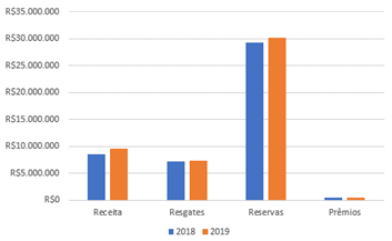 A receita global do setor avançou 11,7% no mesmo período, atingindo R$ 9,5 bilhões. As 16 empresas que integram a FenaCap distribuíram R$ 496 milhões em prêmios em sorteios, um aumento de 3,1%. Ainda em comparação ao mesmo período de 2018, os resgates realizados antecipadamente, ou ao fim do prazo do contrato de capitalização, apresentaram crescimento de 2,9%, alcançando o montante de R$ 7,3 bilhões.