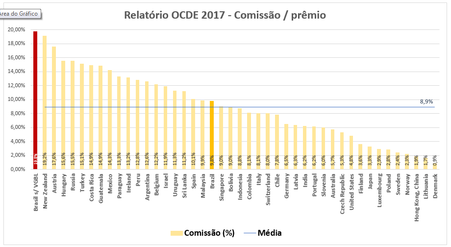 Os dados também apontam que o percentual de comissão em relação ao prêmio no Brasil sobe para 19,80% se for desconsiderado o VGBL, conforme demonstra o gráfico abaixo.