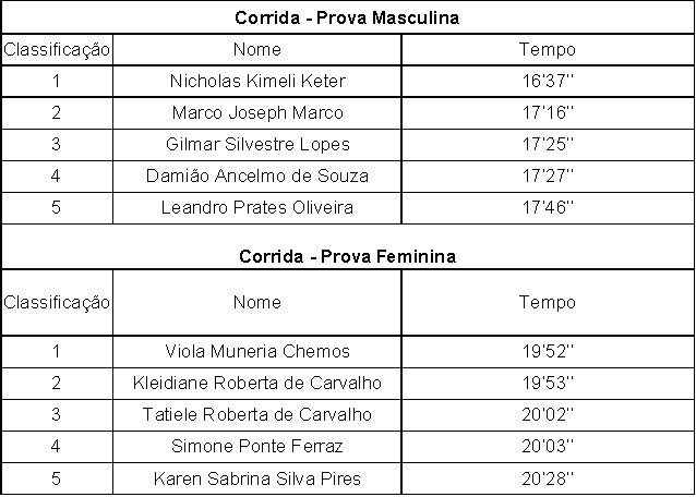 A atleta de Uganda Viola Chemos foi a grande campeã da prova feminina, com o tempo de19’52’’. Já entre os homens, o queniano Nicolas Keter subiu no lugar mais alto do pódio, com o tempo de 16’37’’. Os atletas Bradesco Seguros também conseguiram posições de destaque na etapa carioca: Damião Souza e Leandro Prates terminaram na quarta e quinta posições, respectivamente, com os tempos de 17’27’’ e 17’46’’.