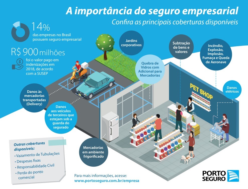 Infográfico produzido pela Porto Seguro e que aborda o Seguro Empresarial.