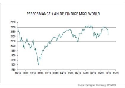 Graças a um voluntarismo renovado do BCE e a alguns sinais encorajadores relativos às tensões comerciais, foi possível, no mês de setembro, suprimir quase todos os danos causados aos mercados bolsistas pelos sinais inversos emitidos no início do mês de agosto. Mas a demora da Fed, que associa a modesta descida de 0,25% das suas taxas de juros diretoras a um discurso fraco, e a pouca influência que o BCE ainda tem sobre os mercados, não permitiu que a renda variável fosse mais longe. Nem o Eurostoxx, nem o índice norte-americano e nem mesmo o índice japonês Nikkei conseguiram fechar este terceiro trimestre de 2019 com níveis significativamente superiores aos alcançados no final de abril, na sequência do alívio geral no início do ano. Por sua vez, o dólar continuou a ser sustentado por uma política monetária norte-americana ainda muito restritiva, o que explica, em grande parte, o fraco desempenho dos mercados de ações emergentes, que permanecem muito abaixo dos seus níveis máximos do ano. Globalmente, os mercados de renda fixa valorizaram depois da sua baixa no mês de agosto.