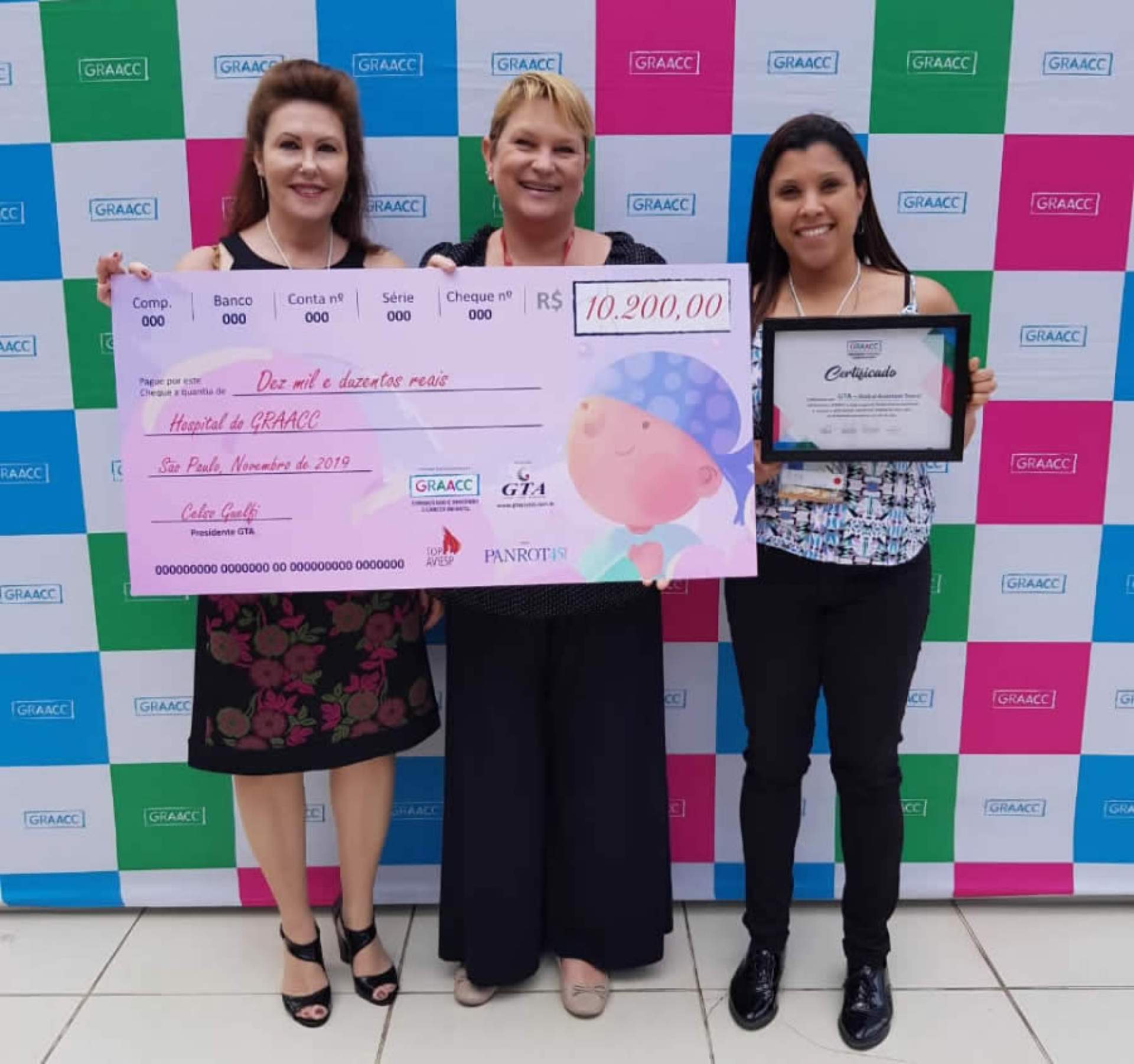 Na última quinta-feira, dia 31, a GTA - Global Travel Assistance entregou ao hospital GRAACC – Grupo de Apoio ao Adolescente e à Criança com Câncer, um cheque no valor de R$ 10.200. A arrecadação foi realizada no período de 7 a 13 de outubro, quando parte ds vendas foram convertidas em doação. “São nove anos de parceria e de muita satisfação por abraçar uma causa e luta que atinge muitos brasileiros”, comemora Celso Guelfi, presidente da GTA.