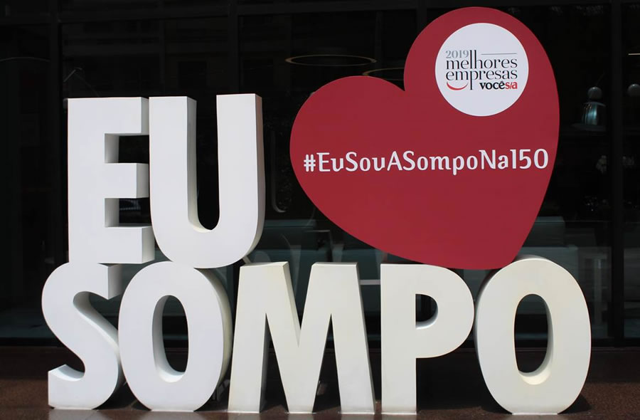 Totem em comemoração à conquista da Sompo, que está entre as 150 Melhores Empresas para Trabalhar