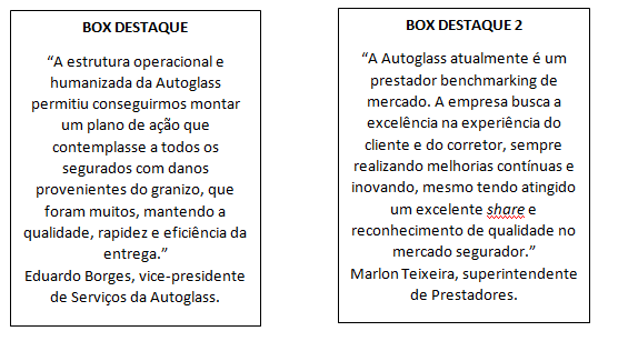 A seguradoras também sabem da importância de se contratar um prestador que tenha estrutura para eventualidades deste tipo. Marlon Teixeira, superintendente de Prestadores da SulAmérica, ressalta que não houve reclamações dos segurados atingidos pela chuva, mesmo com volume significativo de atendimentos: “Quando contatei a Autoglass, na segunda pela manhã, a empresa já estava finalizando o plano de ação para atendimento diferenciado. A empresa atuou em várias frentes de forma a minimizar transtornos e agilizar o atendimento para todos os clientes impactados e não prejudicar o atendimento telefônico dos demais clientes”.