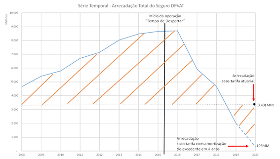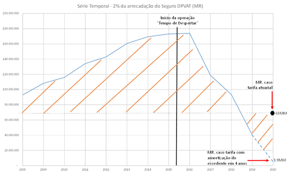 Com os cálculos atuariais superestimados o prêmio de seguro esteve por muitos anos acima do valor necessário para o pagamento dos sinistros e isto acabou gerando uma Margem de Resultado (MR) entre 2008 e 2018 de R$ 1,48 bilhão para o monopólio operador do Dpvat.