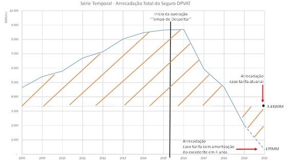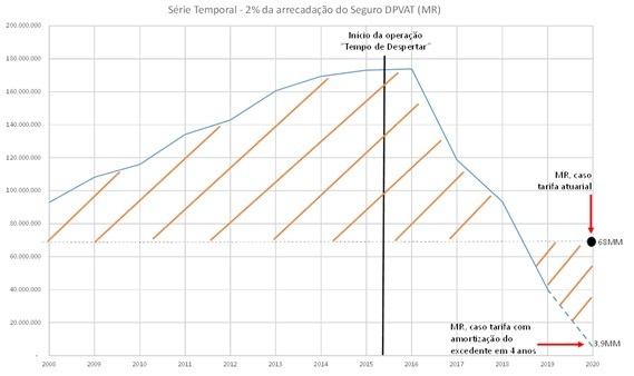 Com os cálculos atuariais superestimados o prêmio de seguro esteve por muitos anos acima do valor necessário para o pagamento dos sinistros e isto acabou gerando uma Margem de Resultado (MR) entre 2008 e 2018 de R$ 1,48 bilhão para o monopólio operador do Dpvat.