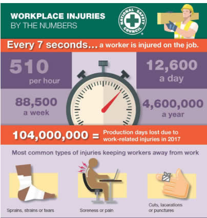 Abaixo, um retrato dos acidentes de trabalho, com um evento a cada 7 segundos naquele país.