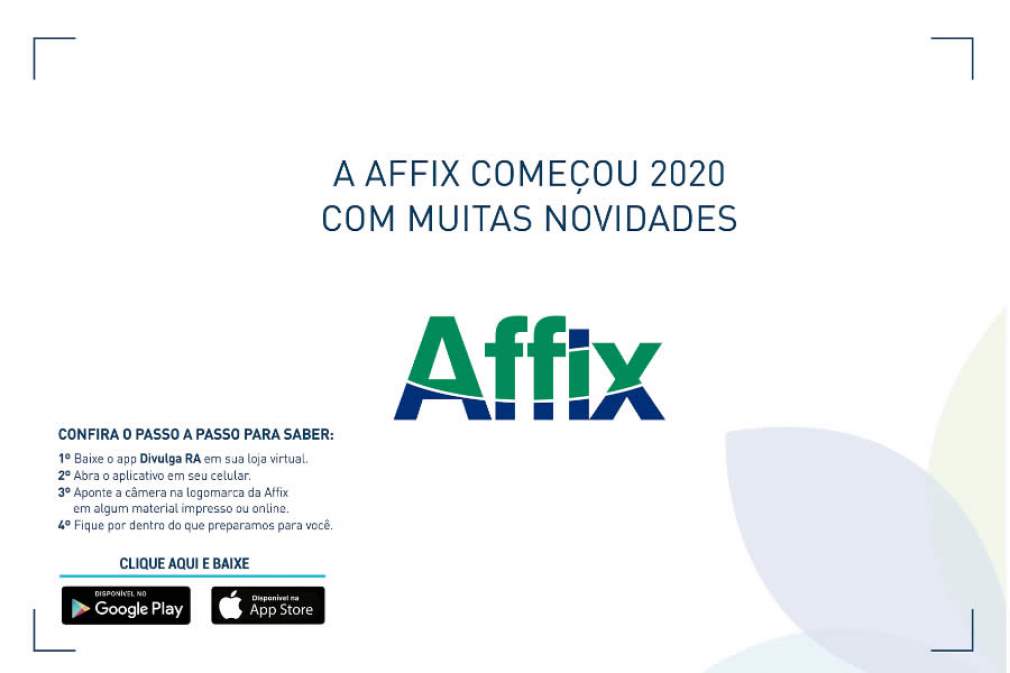 A forma de divulgar a nova marca é inovadora. A tecnologia de Realidade Aumentada foi a alternativa escolhida pela gerente de Marketing para levar a boa nova para o mercado. Executivos do setor, parceiros, clientes e funcionários receberão uma carta convite informando que a Affix começou 2020 com muitas novidades. E para saber os detalhes, a pessoa deve baixar um app em sua loja virtual, direcionar o smartphone para a marca antiga da empresa, impressa no texto da mensagem, e um vídeo com a nova campanha institucional apresenta a nova marca. Outra novidade é a Hannah, a chatbot da Affix que fará o atendimento digital aos clientes, a partir desse mês.