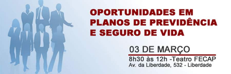 O CVG-SP realizará o evento “Oportunidades em planos de Previdência e Seguro de Vida”, no dia 3 de março, das 8h30 às 12h, no Teatro FECAP, localizado na Av. Liberdade, 532, próximo ao metrô Liberdade. O evento é gratuito e conta com o apoio da Associação das Empresas de Assessoria e Consultoria de seguros de São Paulo (Aconseg-SP) e do Clube dos Corretores de Seguros de São Paulo (CCS-SP), além da parceria com a FECAP.