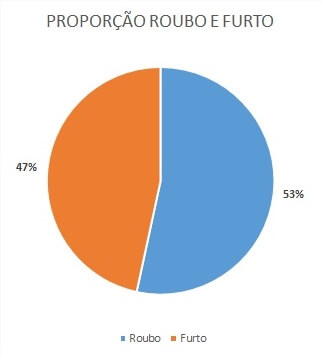 De acordo com Rodrigo Boutti, gerente de operações da Ituran Brasil, o risco aumenta no período – uma vez que os automóveis ficam estacionados na rua por longo espaço de tempo. “Um veículo demora poucas horas para ser totalmente desmontado e, até o folião perceber a perda, o patrimônio já desapareceu”, explica Boutti. A proporção de roubo é 53% durante os Festejos de Momo, enquanto furto registrou 47%. Gráfico 2