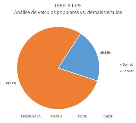 Boutti destaca que o uso do Big Data (a análise e a interpretação de grandes volumes de dados), além de aliado, mudou o conceito de percepção de um evento de roubo e furto. "A tecnologia permite definir, semana após semana, a utilização real do veículo. Na prática, a Inteligência Artificial (IA) já nos permite detectar padrões não usuais no comportamento dos clientes, ou seja, o sistema nos comunica automaticamente de um comportamento fora do padrão. Muitas vezes localizamos o carro, antes mesmo do cliente se der conta que sofreu um furto”, alerta. O estudo mostrou que os carros populares são os preferidos no período de carnaval 79,12%. Gráfico 8.