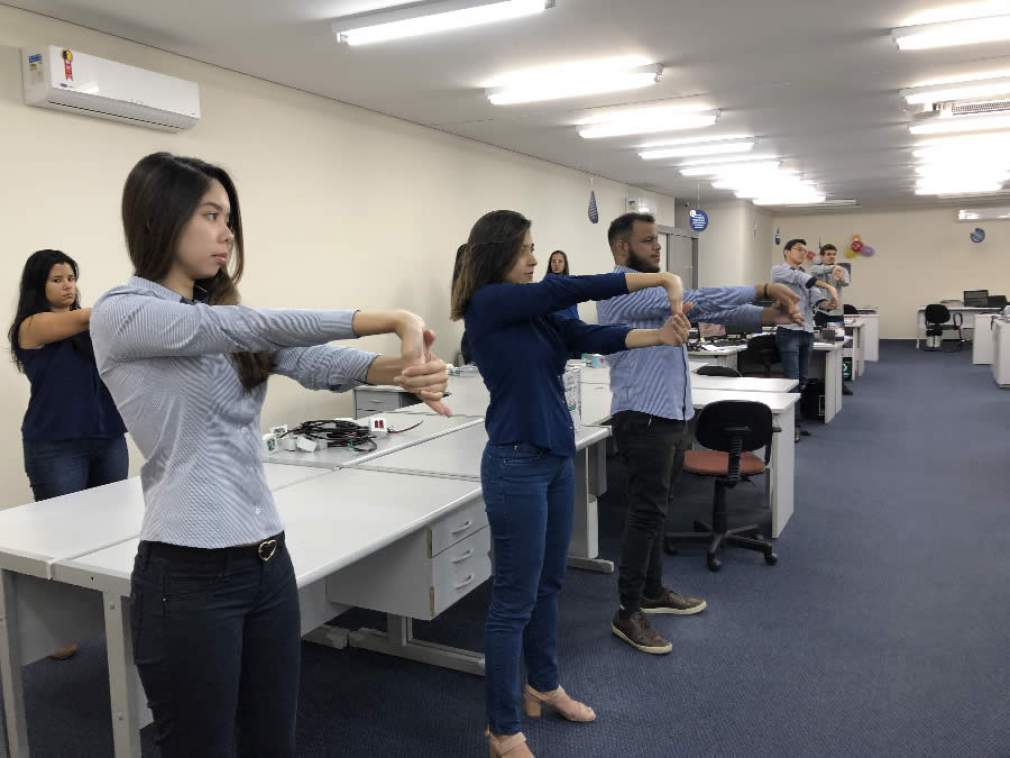 Os dados alarmantes fazem com que algumas empresas desenvolvam iniciativas para proporcionar mais saúde e benefícios físicos aos trabalhadores. É o caso da Consciente Construtora e Incorporadora, que desde abril de 2019, conta com um profissional para desenvolver o programa de ginástica laboral. “São processos de alongamentos e dinâmicas que, além de contribuir para a manutenção da saúde e correção da postura, possibilitam a interatividade e a convivência entre os colaboradores, deixando o ambiente mais descontraído”, afirma a analista de Responsabilidade Social, Flávia Oliveira.