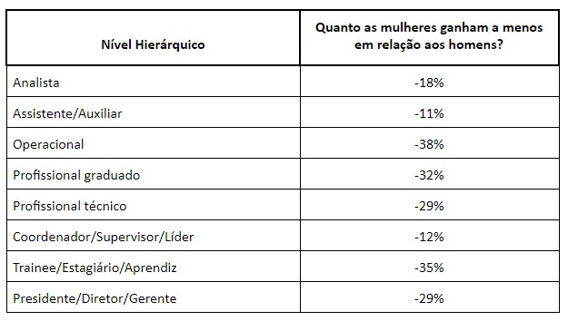 Os dados reforçam uma questão periodicamente pautada, a falta de equidade de gênero no mercado de trabalho, tanto em representação feminina, escassa nos grandes cargos de uma empresa, enquanto salarial, que não permite que mulher e homem possuam as mesmas oportunidades.