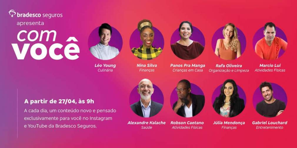 A plataforma surgiu como uma opção de conhecimento, lazer e bem-estar durante a quarentena. "A nossa proposta é trazer diariamente informações sobre diferentes assuntos, com a intenção de ajudar a tornar mais leve o dia a dia das pessoas, principalmente nesse período desafiador", afirma Alexandre Nogueira - Diretor de Marketing do Grupo Bradesco Seguros.