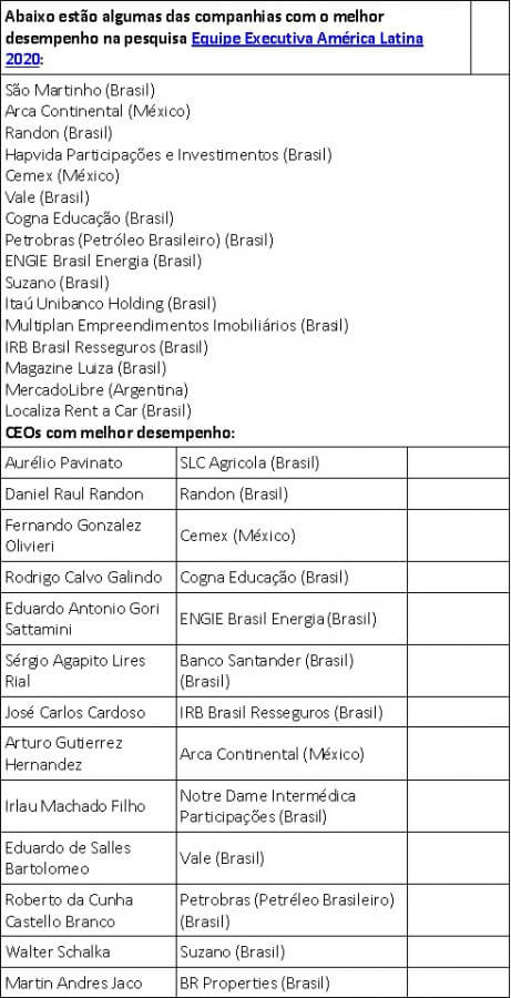 Os Executivos e Companhias Mais Resilientes da América Latina