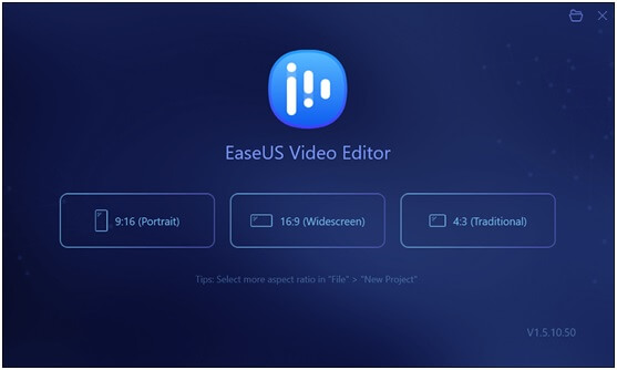 Assim que você abrir o software, ele solicitará que você escolha uma proporção para o seu vídeo. Escolha uma das opções disponíveis na tela e ela permitirá que você avance.