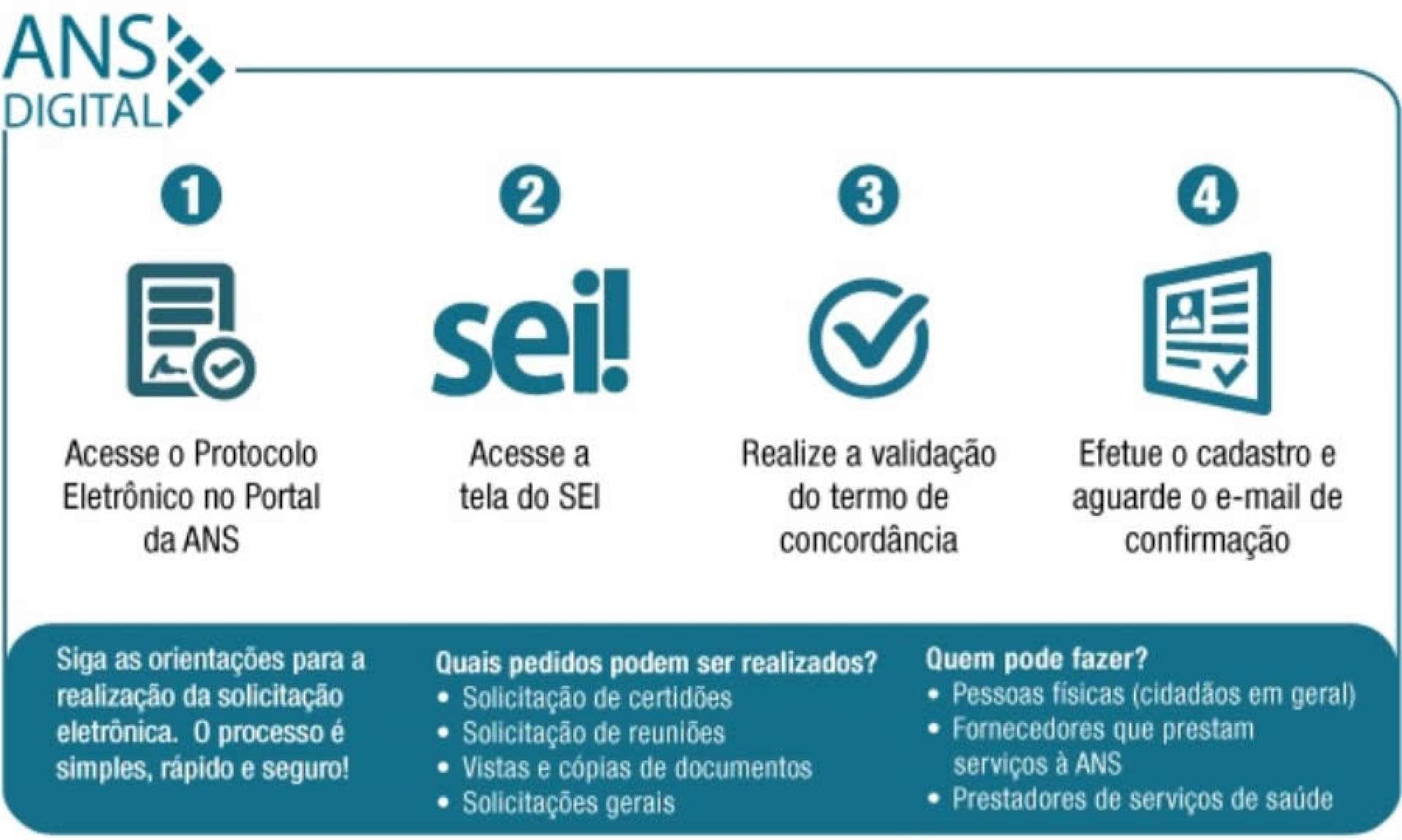 A ferramenta (clique aqui) permitirá a fornecedores, prestadores de serviços de saúde e demais usuários e interessados cadastrar e enviar documentos para abertura e requisição de processos - como, por exemplo, solicitação de certidões, revisões, vistas e cópias de documentos. As operadoras já utilizam essa funcionalidade através de interface específica - o Portal Operadoras.