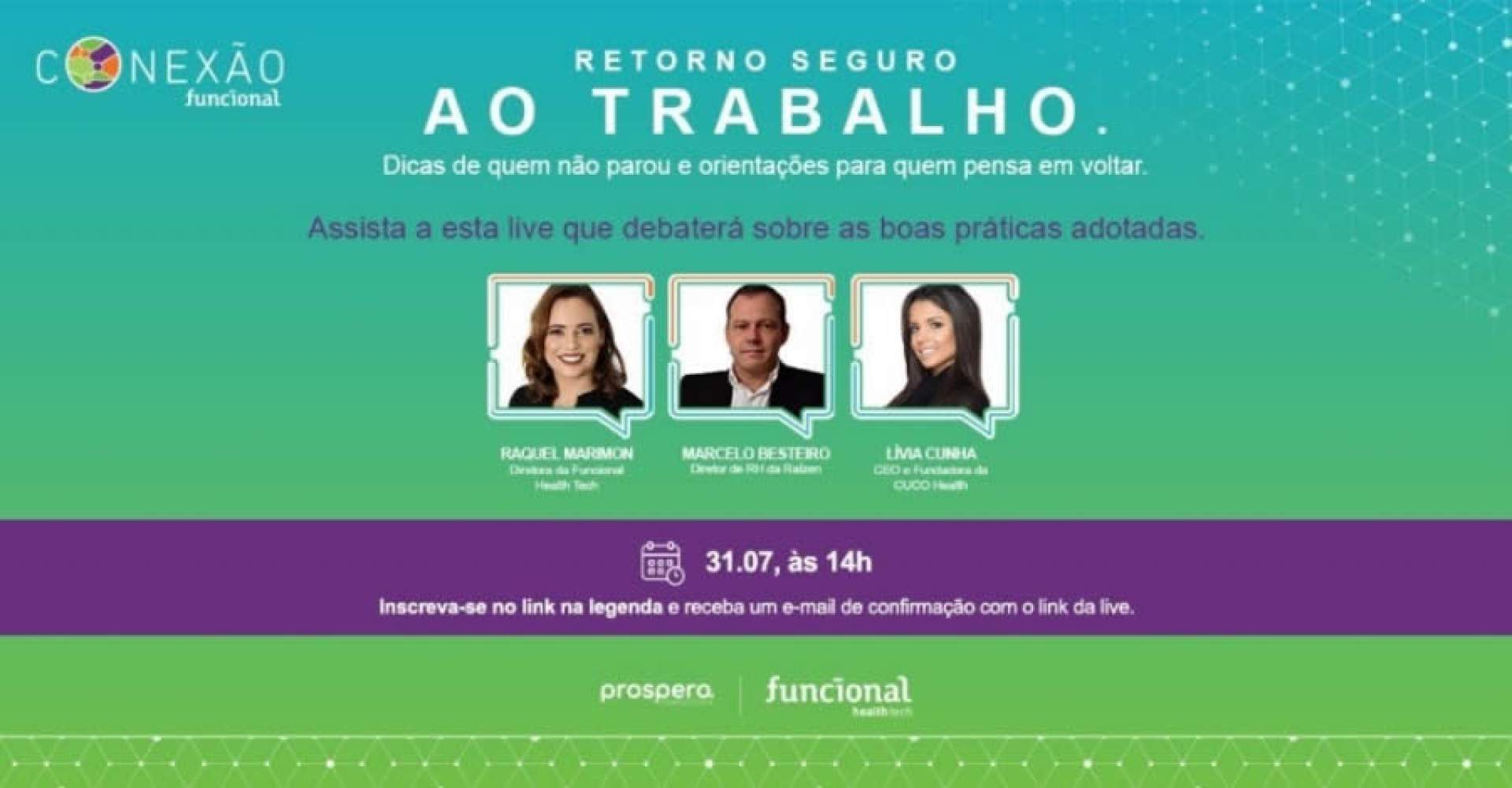 A Funcional Health Tech - líder em inteligência de dados e serviços de gestão no setor de saúde - promoverá nesta sexta-feira (31), das 14h às 15h, uma live que abordará o retorno seguro ao trabalho, com dicas de quem não parou e orientações para quem irá voltar.