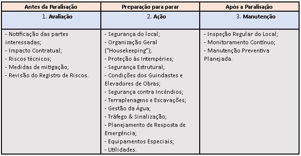 “Este é um material básico, que pode ser adaptado conforme a necessidade de cada obra ou projeto. O intuito dele é mostrar de forma clara e prática quais as medidas a serem tomadas para criar um gerenciamento de risco em relação à questão de paralisação e a sua retomada”, afirma.