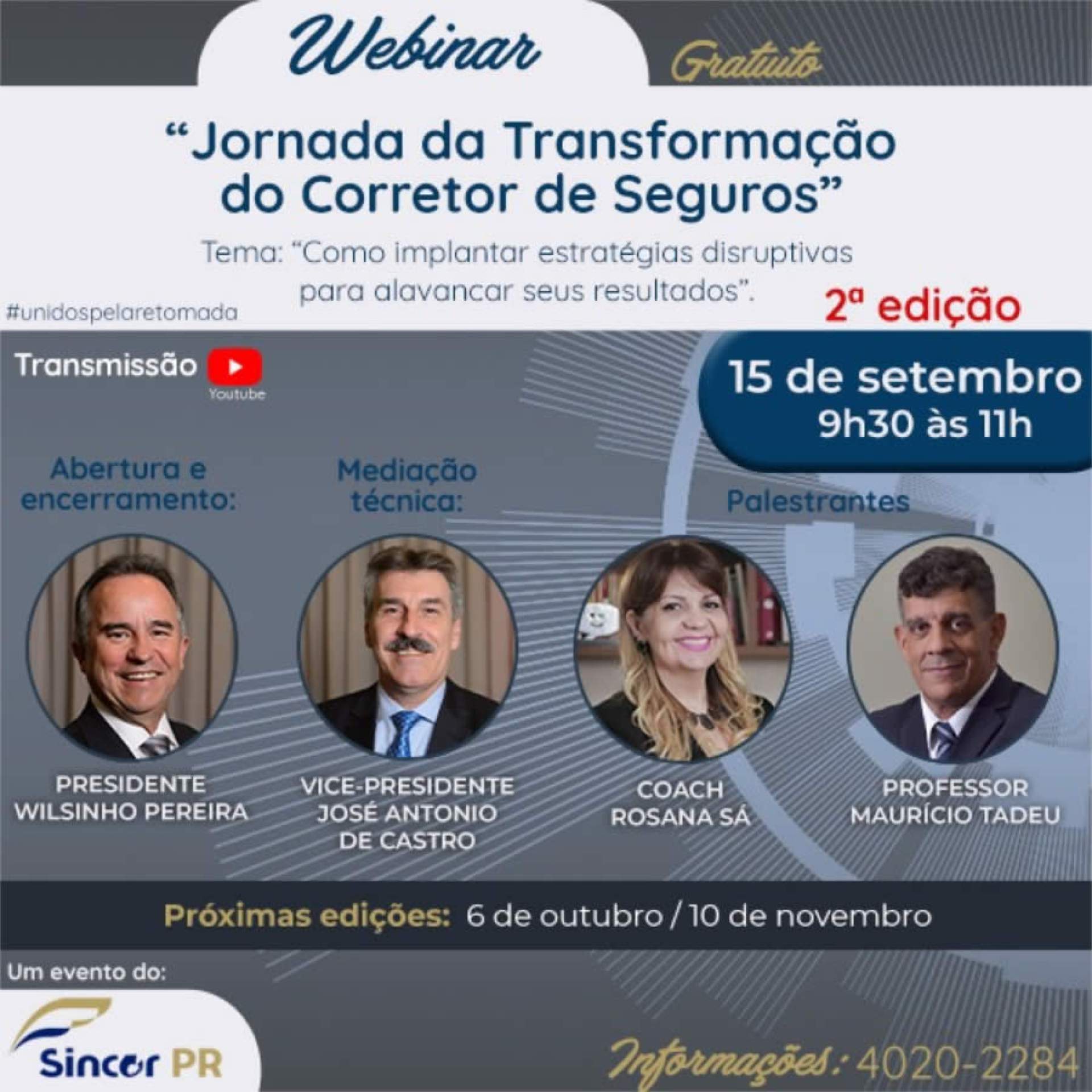 Sincor-PR promove 2ª edição do webinar “Jornada da Transformação do Corretor de Seguros”, dia 15 de setembro