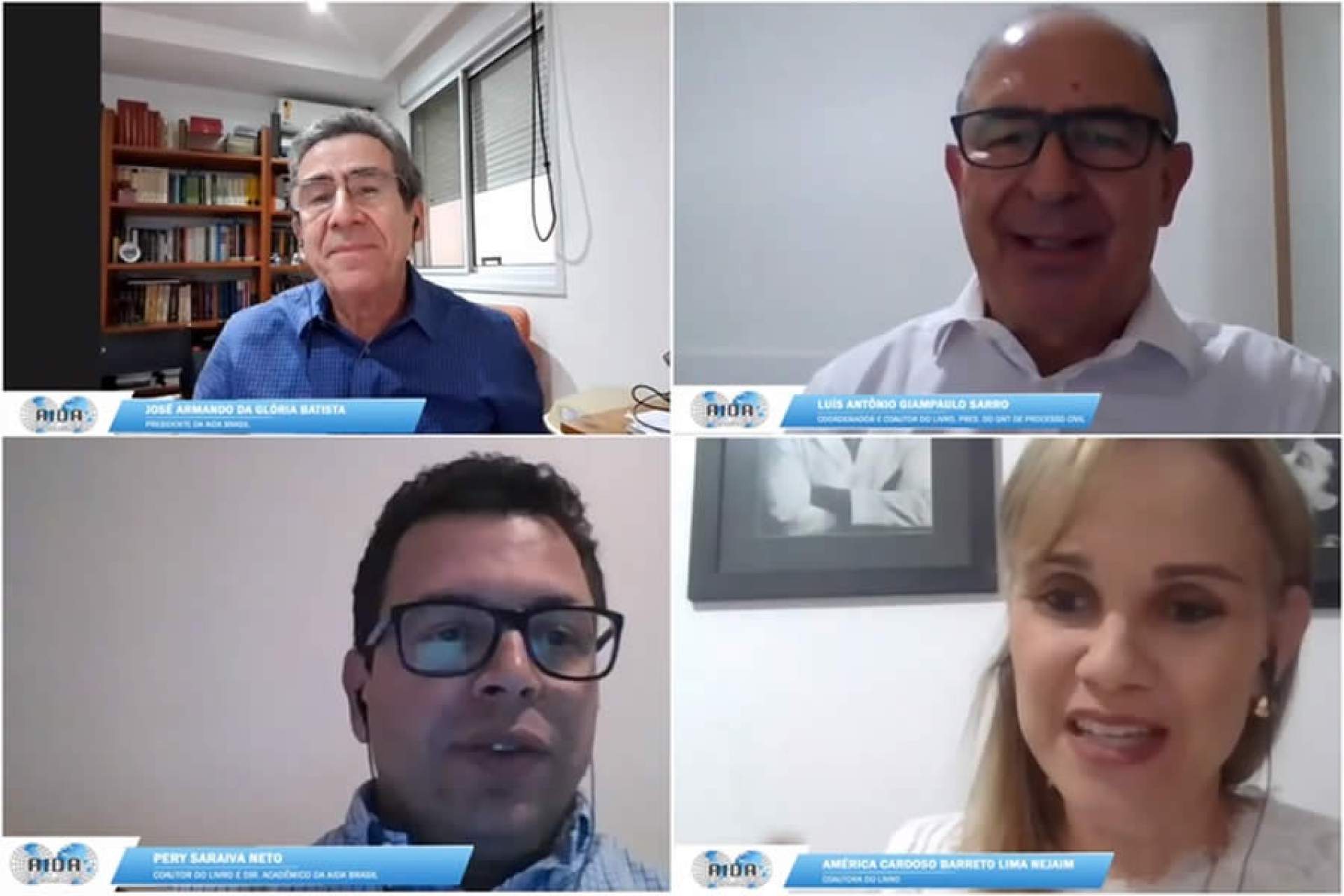 Na última sexta-feira (28), a Associação Internacional do Direito do Seguro - AIDA Brasil - realizou a quinta fase do ciclo de palestras de "Código de Processo Civil Anotado e Comentado". Dessa vez, os temas abordados foram "Processo Civil e Seguro" e "Estabilização da Tutela Antecipada". Os debates tiveram as participações de Luis Antônio Giampaulo Sarro, Presidente do GNT de Processo Civil, Luiz Henrique Volpe Camargo e América Cardoso Barreto Lima Nejaim, coautora da obra. A live foi apresentada pelo presidente da instituição, José Armando da Glória Batista e moderada por Pery Saraiva Neto, que além de coautor do livro é Diretor Acadêmico da AIDA.