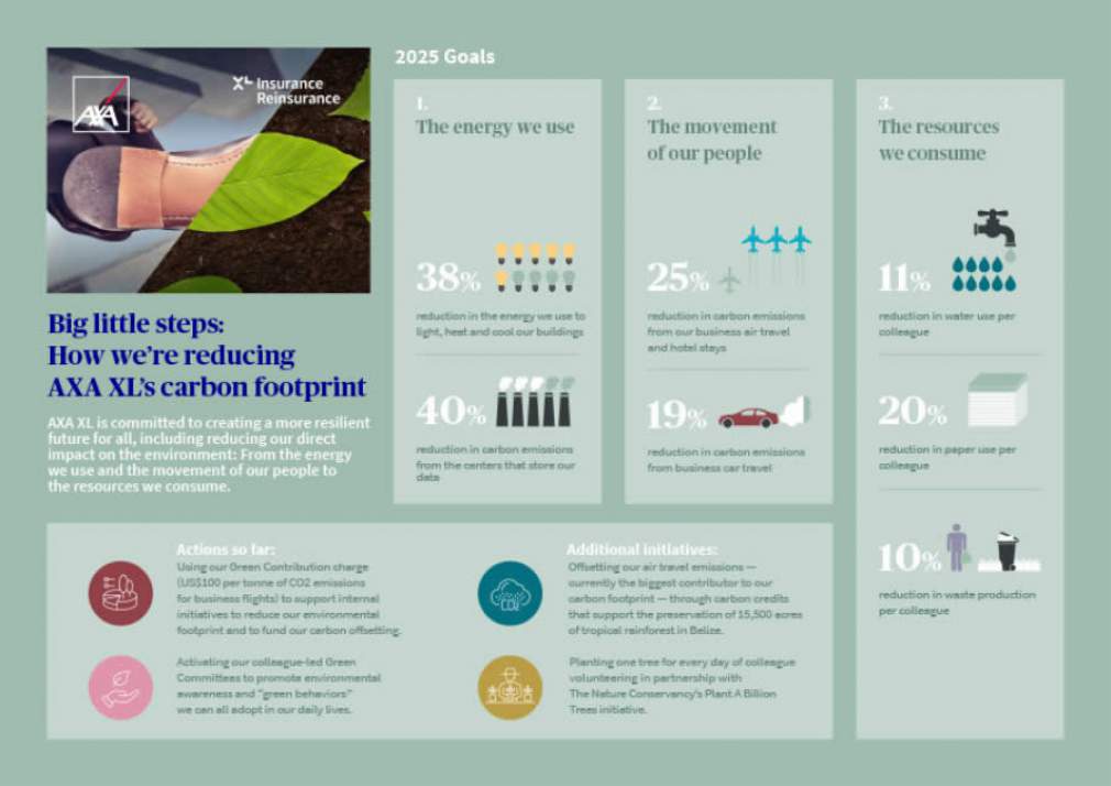 O plano de gestão de carbono é um foco central da estratégia da AXA XL, que se concentra nas mudanças climáticas, acesso à água e resiliência financeira.