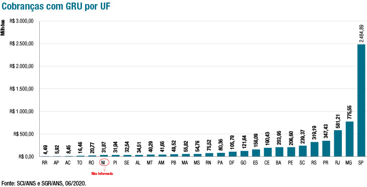 Desde 2000, o ressarcimento ao SUS já encaminhou para inscrição em Dívida Ativa R$ 1,36 bilhão, dos quais R$ 753,81 milhões ocorreram no período de 2016 a 2020. No primeiro semestre de 2020, o valor encaminhado chegou a R$ 277,29 milhões, reflexo do foco dado pela área técnica da ANS no saneamento de processos físicos. Com a maior assertividade dos casos notificados, a qualificação das análises de impugnações e recursos, bem como a atuação da Agência Reguladora sobre o relacionamento e orientação das operadoras, espera-se reduzir progressivamente a necessidade desse encaminhamento.