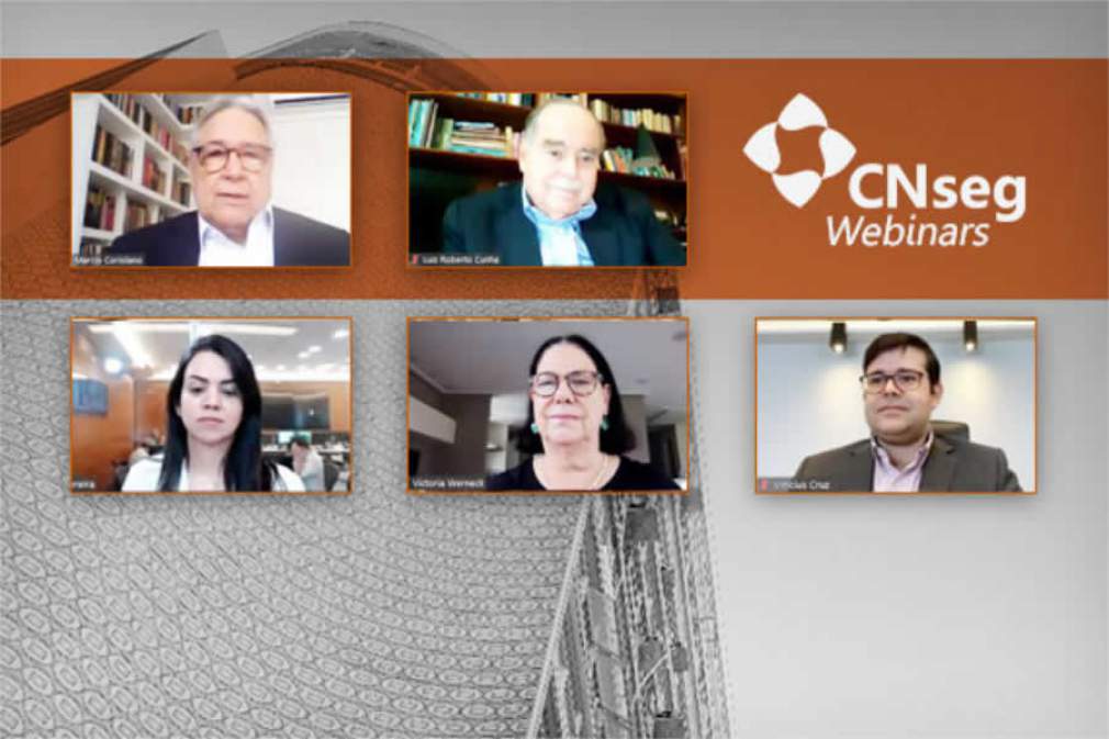 O webinar, moderado pelo Presidente da Confederação Nacional das Seguradoras, Marcio Coriolano, contou com a participação do Professor de Economia e Decano do Centro de Ciências Sociais da Puc-RJ, Luiz Roberto Cunha; do Diretor Financeiro do Grupo Bradesco Seguros, Vinicius Cruz; da Estrategista-chefe da área de Investimentos da MAG Investimentos, Patrícia Pereira; e da Economista Chefe da Icatu Seguros, Victoria Werneck.