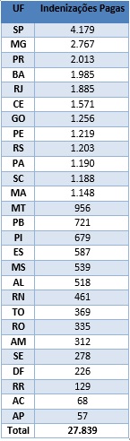 No entanto, proporcionalmente, outros estados também impressionam. Em Alagoas, apesar de um número bem mais baixo de indenizações pagas, 20% do total foram concedidos para beneficiários de vítimas fatais. No Rio de Janeiro, esse número representou 19% e na Bahia, 14%.