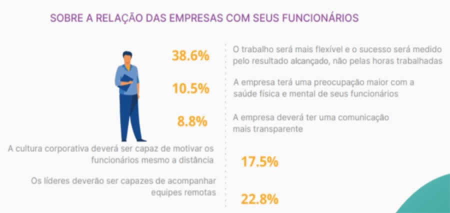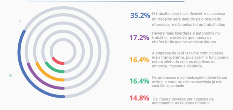 O protagonismo do home office trouxe à tona pontos fundamentais à evolução das empresas e, principalmente, das pessoas, antecipando fortes e cruciais tendências para o futuro do trabalho, que antes acabavam passando despercebidas. Não é mais possível dissociar trabalho, de bem-estar, qualidade de vida e equilíbrio. As organizações que se atentaram a isso durante a pandemia, por exemplo, e ouviram o que seus funcionários tinham a dizer - sobre anseios, dificuldades, sugestões, sentimentos - foram as que mais rápido se adaptaram ao novo normal. O relatório anual da Workana feito neste contexto que estamos vivendo revela que só 11,9% das empresas disseram ter disponibilizado canais de comunicação entre colaboradores e líderes. O número ainda é baixo, é inegável. No entanto, ele nos mostra que a perspectiva professional centric - que segundo a Workana, é a ressignificação do trabalho, na qual deixa-se de lado o conceito office centric (centrado no escritório), para focar em qualquer lugar onde o profissional esteja e esteja bem -, vem ganhando um espaço importante junto aos gestores que estão se movendo rumo ao futuro - novo.