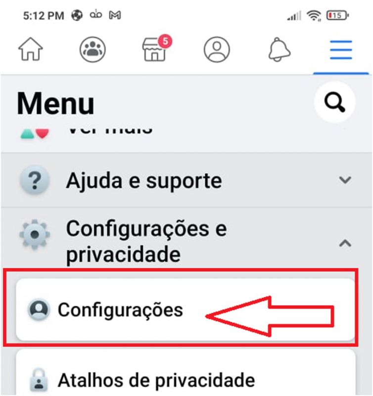 4) Em Configurações e Privacidade, encontre as "Configurações! e acesse ali.