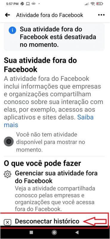 6) São duas as atividades que você deve achar: Desconectar Histórico e depois desconectar histórico, de novo.