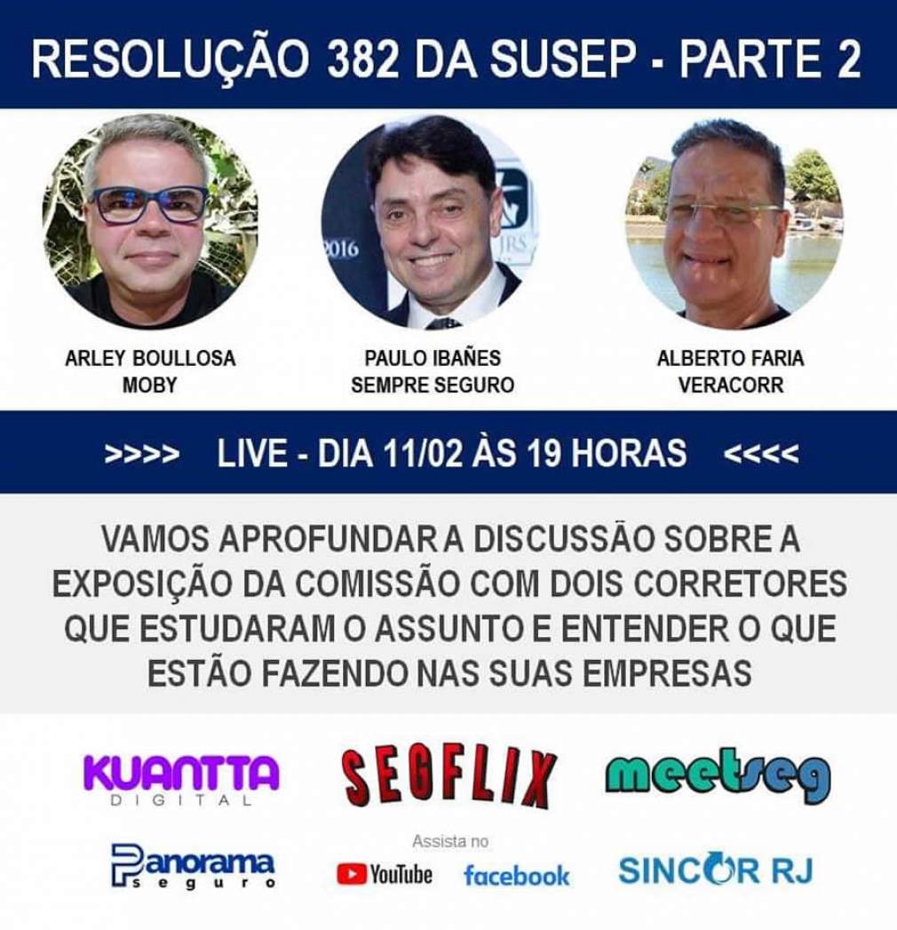 O fundador da Kuantta Consultoria, Arley Boullosa, vai dar continuidade ao que se refere a Resolução 382, por ter consciência que é necessário ampliar a discussão do tema com a categoria. "A resolução 382 da susep impacta diretamente nossa atividade. Está aí e precisamos cumprir até que haja qualquer mudança que determine o contrário. A categoria ainda precisa discutir muito o tema para encontrar a melhor maneira de conviver com a exposição do seu comissionamento para os clientes e a Kuantta vai trazer mais dois grandes nomes do nosso mercado para dar suas opiniões sobre a resolução e ajudar os corretores a decidirem o que fazer. Será mais um encontro importante e relevante que acontece no Segflix que vem se consolidando como o melhor canal de conteúdo para os corretores de seguros", explicou.