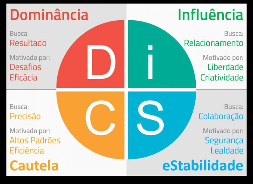 DISC é um acrônimo (sigla) de quatro palavras em inglês, cada uma delas com seu próprio significado. Mnemonicamente, forma a palavra inglesa disc (disco): D, dominance (dominância); I, influence (influência); S, steadiness (estabilidade); e C, conscienctiouness (consciência, conformidade). Cada uma delas define um tipo de perfil comportamental. Claro que todos somos portadores de diversos atributos identificáveis em cada um dos desses quatro perfis. Todavia, com certeza, um deles será predominante.