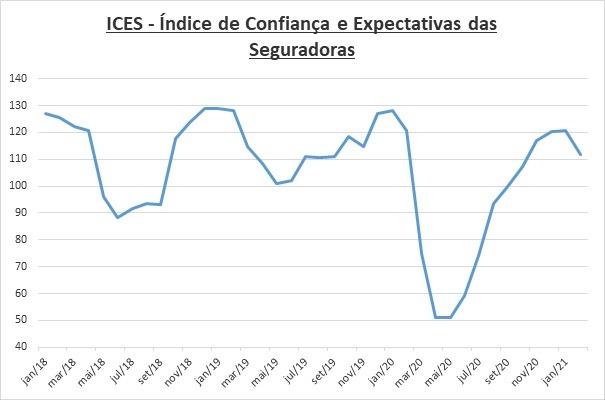 Em fevereiro de 2021, as seguradoras continuaram otimistas. Ou seja, com indicadores de confiança acima dos 100 pontos.