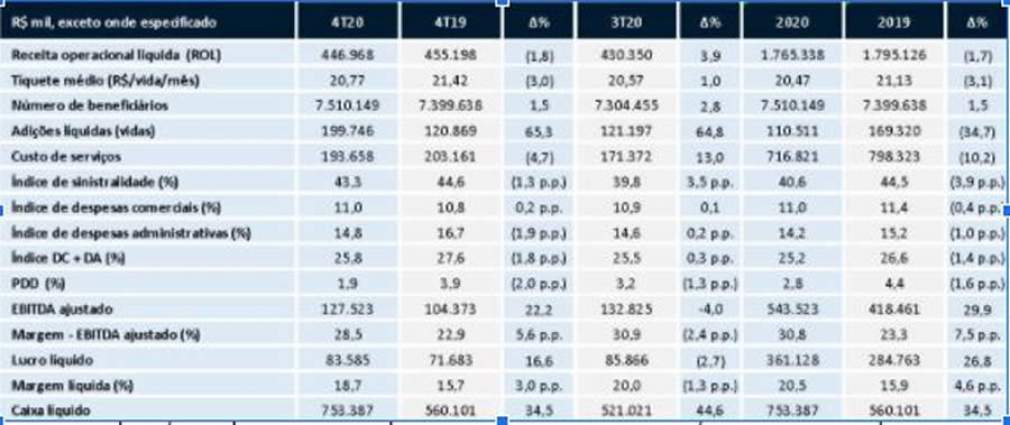 Adição de 200 mil beneficiários no 4T20 e 321 mil no semestre, melhor desempenho desde 2011;